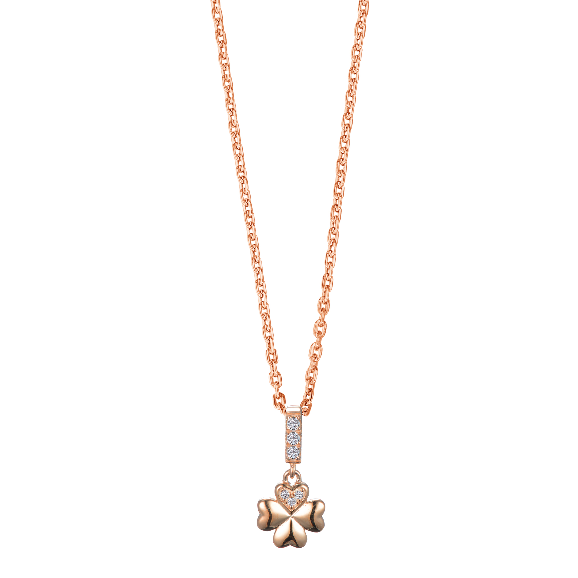 Vierblättriges Kleeblatt. Dieser Charm-Clip soll besonders viel Glück bringen. Seit jeher gilt das vierblättrige Kleeblatt als das Glücksymbol. Ein vierblättriges Kleeblatt zu finden ist etwas ganz besonderes, da Kleeblätter in der Regel nur drei Blätter besitzen! Das vierte Blatt des Anhängers ist mit kleinen Zirkonia besetzt.