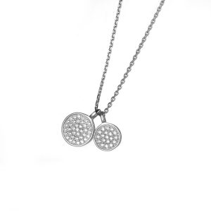 DOOSTI Halskette 925 Silber, rhodiniert, mit zwei Anhängern. Die Kette kann lang oder doppelt getragen werden.