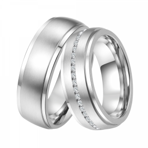 Hochwertiges Paar Edelstahlringe, aus chirurgischem Edelstahl 316L gefertigt. Die Oberflächen sind gebürstet und poliert. Innen sind die Ringe für einen besseren Tragekomfort bombiert.