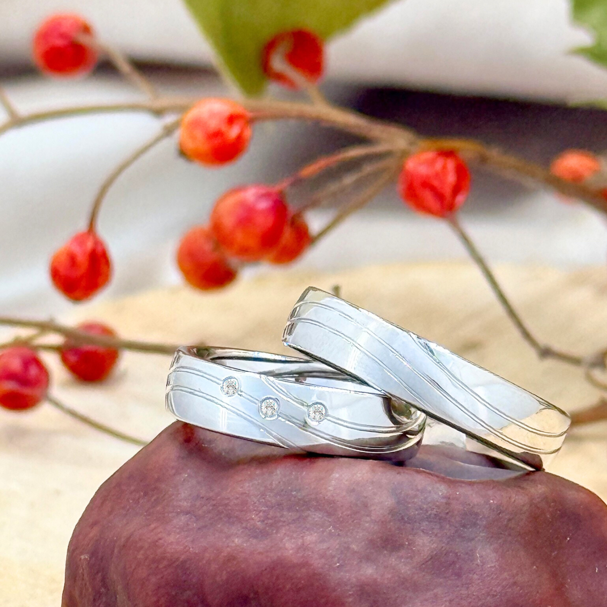 Hochwertiges Paar Silberringe aus 925/- Silber gefertigt. Die Oberflächen sind poliert und rhodiniert. Innen sind die Ringe für einen besseren Tragekomfort bombiert.