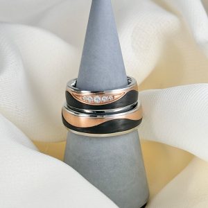 - Ring – Oberfläche: Edelstahl gebürstet mit PVD Rose Gold beschichtet/Carbon gebürstet